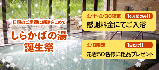 【値上げ前の特別サービス企画】しらかばの湯誕生祭を開催!(2026年4月1日~4月30日まで)